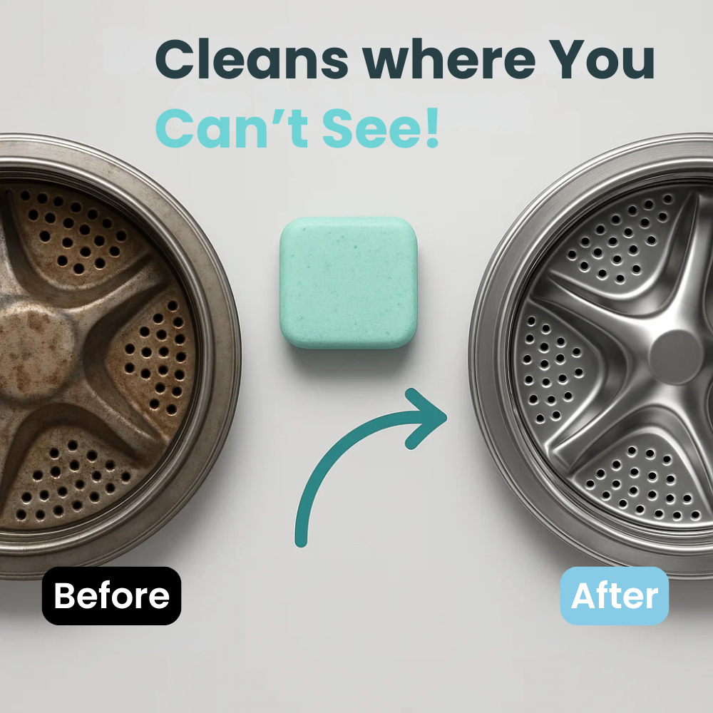 Just drop in one tablet and run an empty cycle — it breaks everything down and flushes it away, leaving your machine clean, fresh, and actually able to clean your clothes.