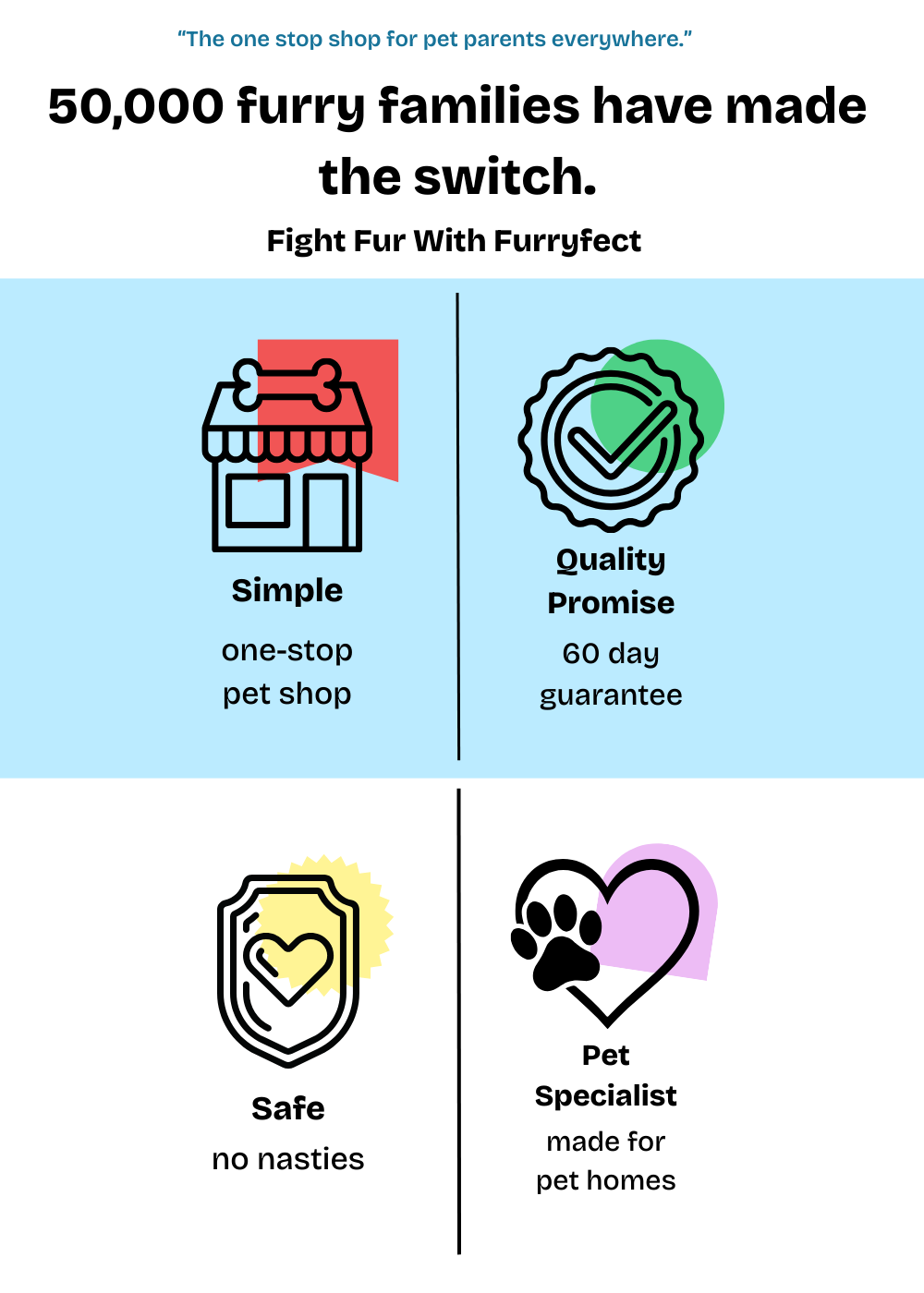 Furryfect exists to make life with pets simpler, cleaner, and a whole lot less stressful. From cleaning to grooming to playing, Furryfect brings everything a pet parent needs into one simple spot. Whether we have it now or we're building it for you, if it's made for furry families, it belongs here, just as much as you do. And we're just getting started!