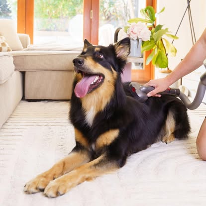 Perfect for any kind of grooming! Fine, angled bristles gently remove loose fur and debris while keeping your dog's coat sleek and tangle-free. The vacuum sucks it all up as you brush—leaving your home fur-free!